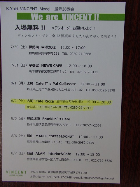 岐阜県からのHand madeギター展示・試奏会(^^♪